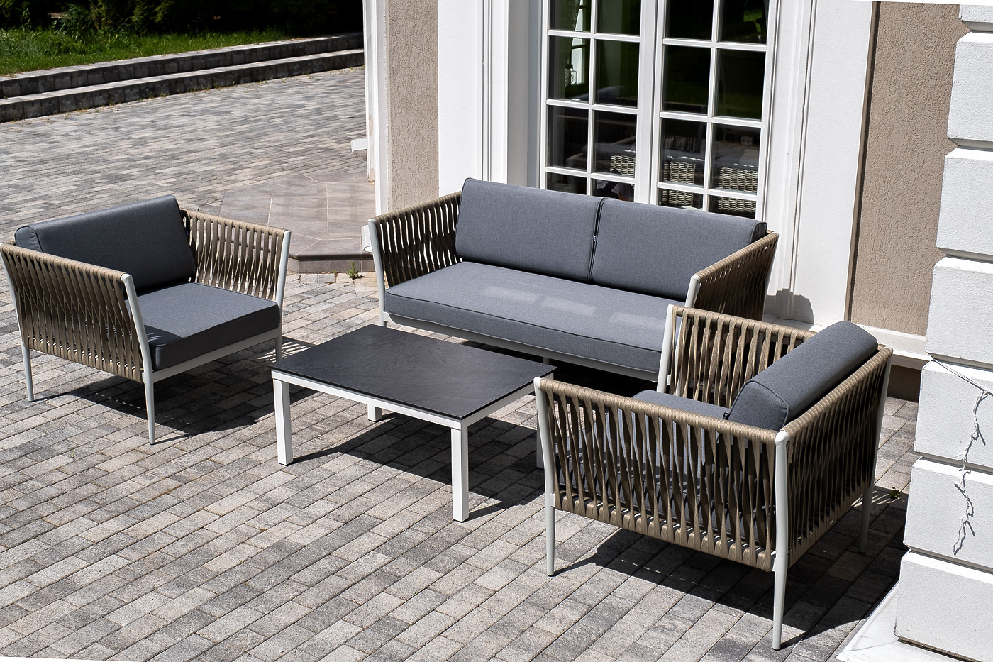 "Касабланка" лаунж-зона плетеная из роупа 4-местная, цвет серый