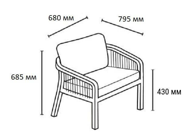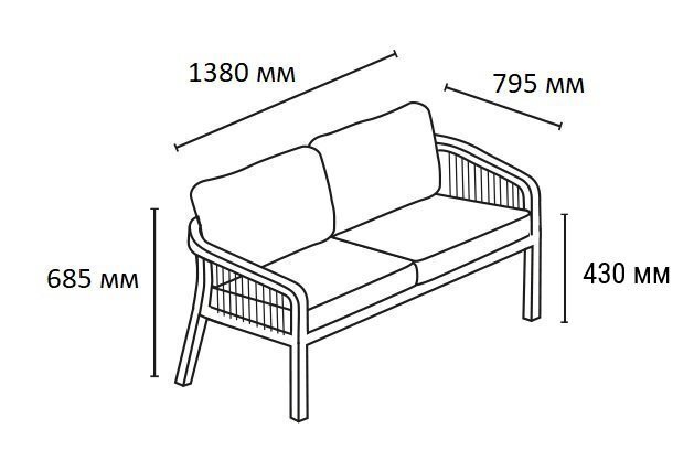Подушки в комплекте, ткань подушек - олефин, наполнитель - толстый поролон. Материалы устойчивы к УФ-излучению и другим погодным воздействиям.