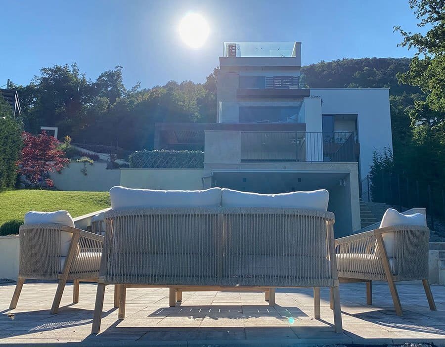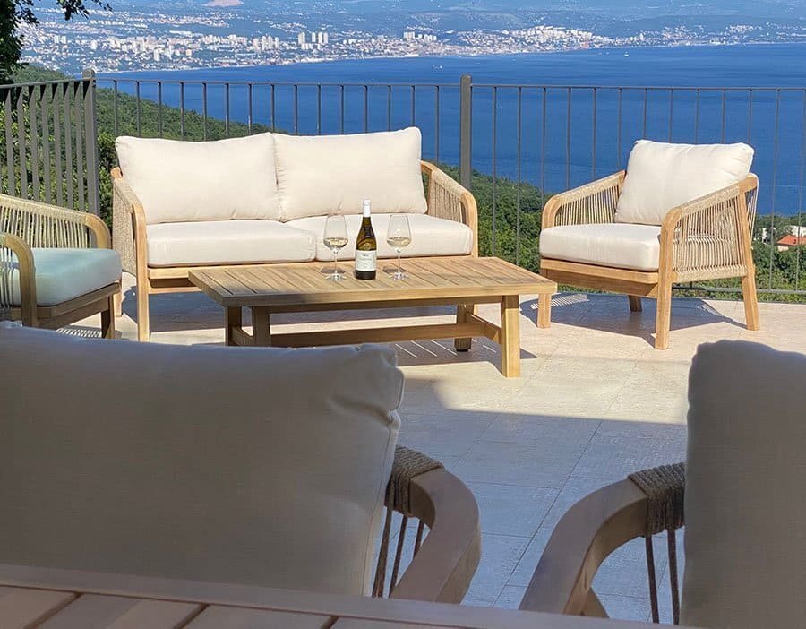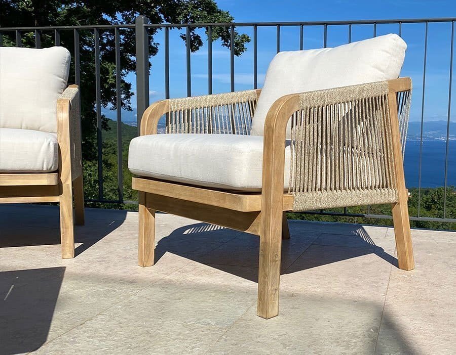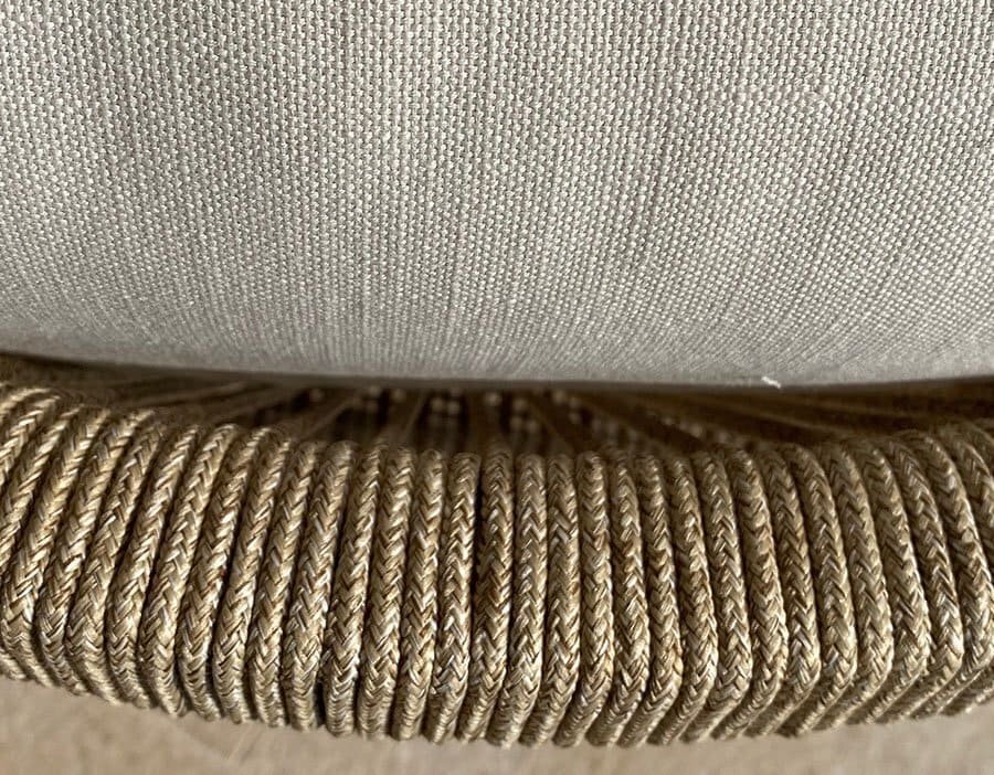 Веревочное плетение роуп 6 мм толщиной на спинке и подлокотниках кресел излучает стиль в сочетании с деревянными поверхностями.