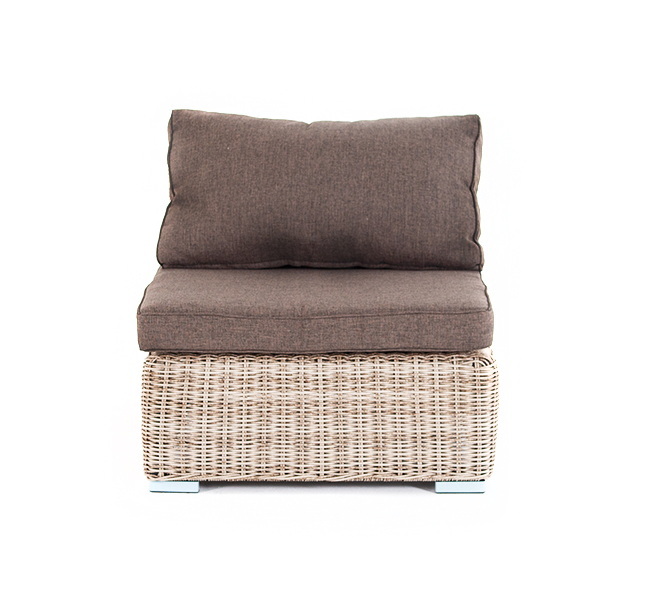 Прямой модуль «Лунго», выполненный из круглого искусственного ротанга бежевого оттенка, позволяет использовать не только как самостоятельный элемент, но и быть частью лаунж-зоны, в которую данная модель превосходно интегрируется. Габариты составляют - 740×860×650 мм, в комплект входят подушки серого цвета.Бренд | 4SIS |