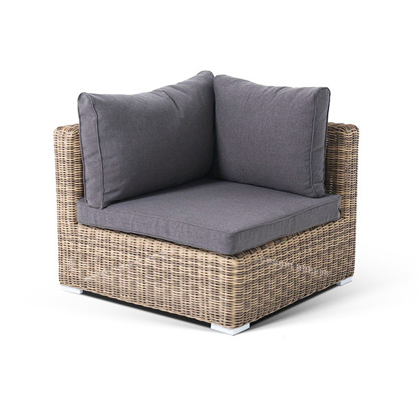 «Лунго» угловой модуль из круглого искусственного ротанга, является неотъемлемой частью лаунж-зоны, в своем основании имеет каркас из алюминия, который вручную оплетен ротангом натурального соломенного цвета. В комплектации предусмотрены подушки из полиэстера, пропитанные влагоотталкивающим составом. Габариты изделия: 860×860×650 мм.Бренд | 4SIS |