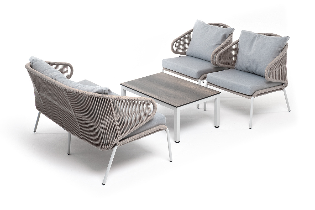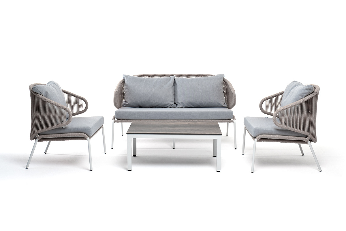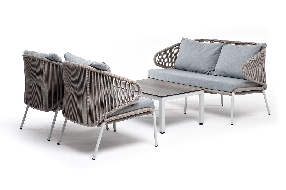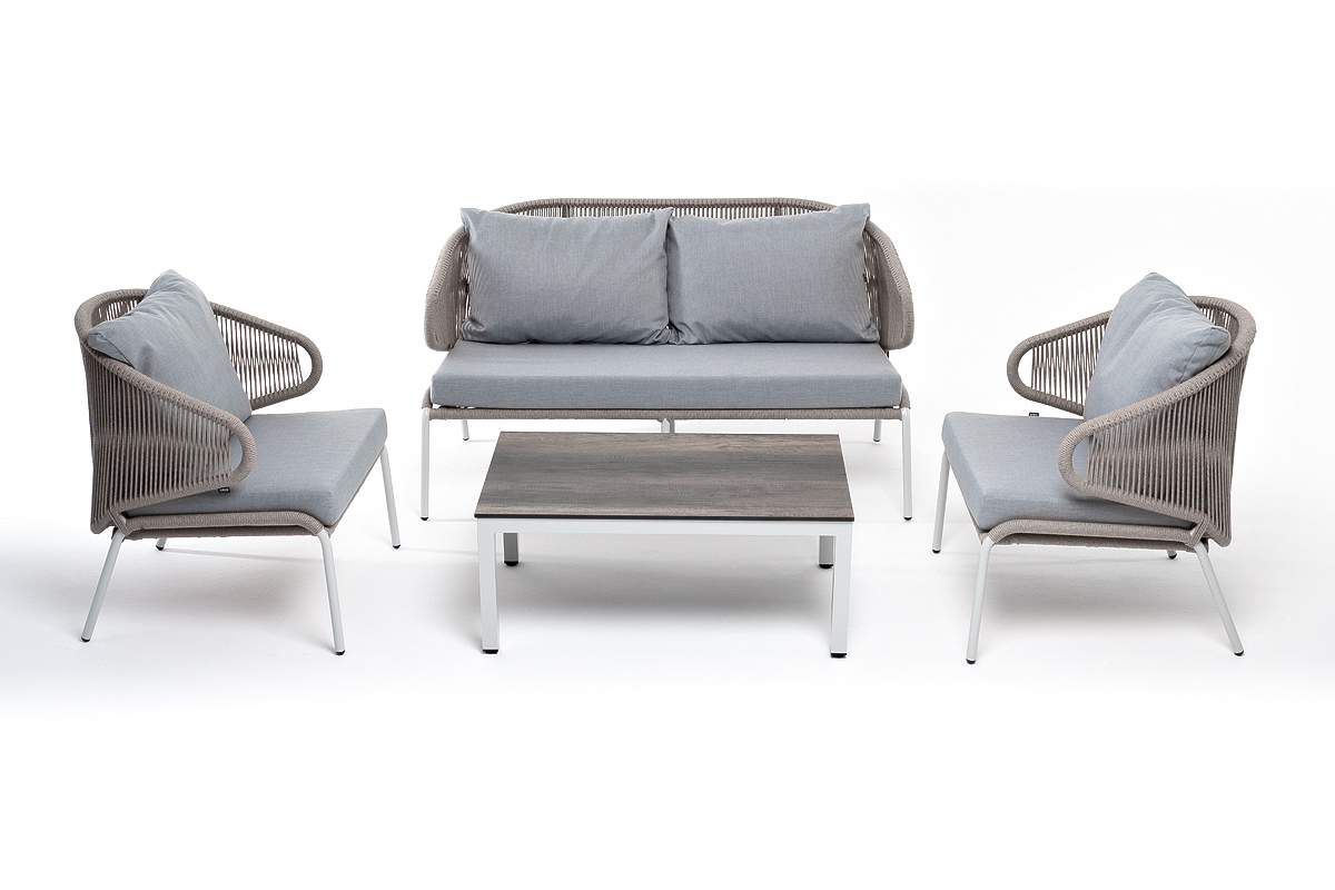"Милан" лаунж-зона 4-местная плетеная из роупа (веревки), каркас алюминиевый светло-серый, роуп серый меланж