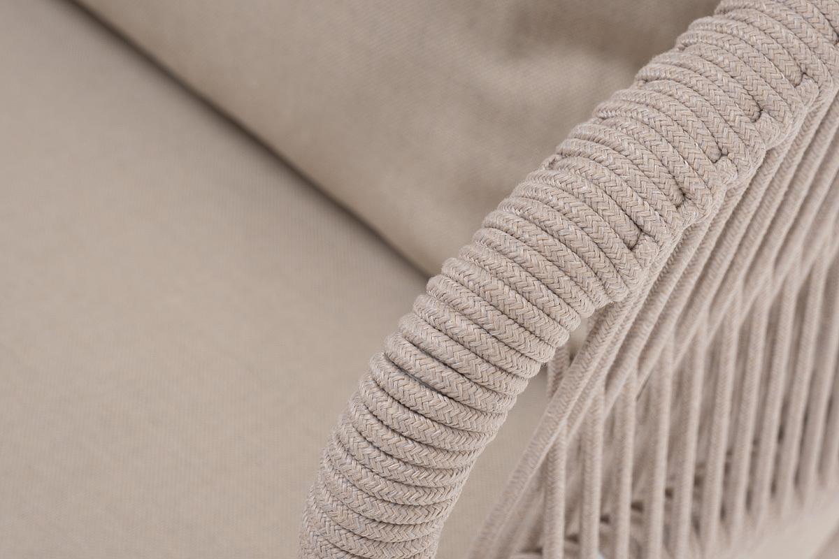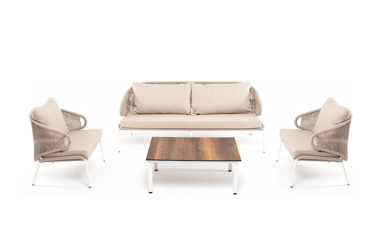 "Милан" лаунж-зона 5-местная плетеная из роупа (веревки), каркас алюминиевый белый, роуп бежевый