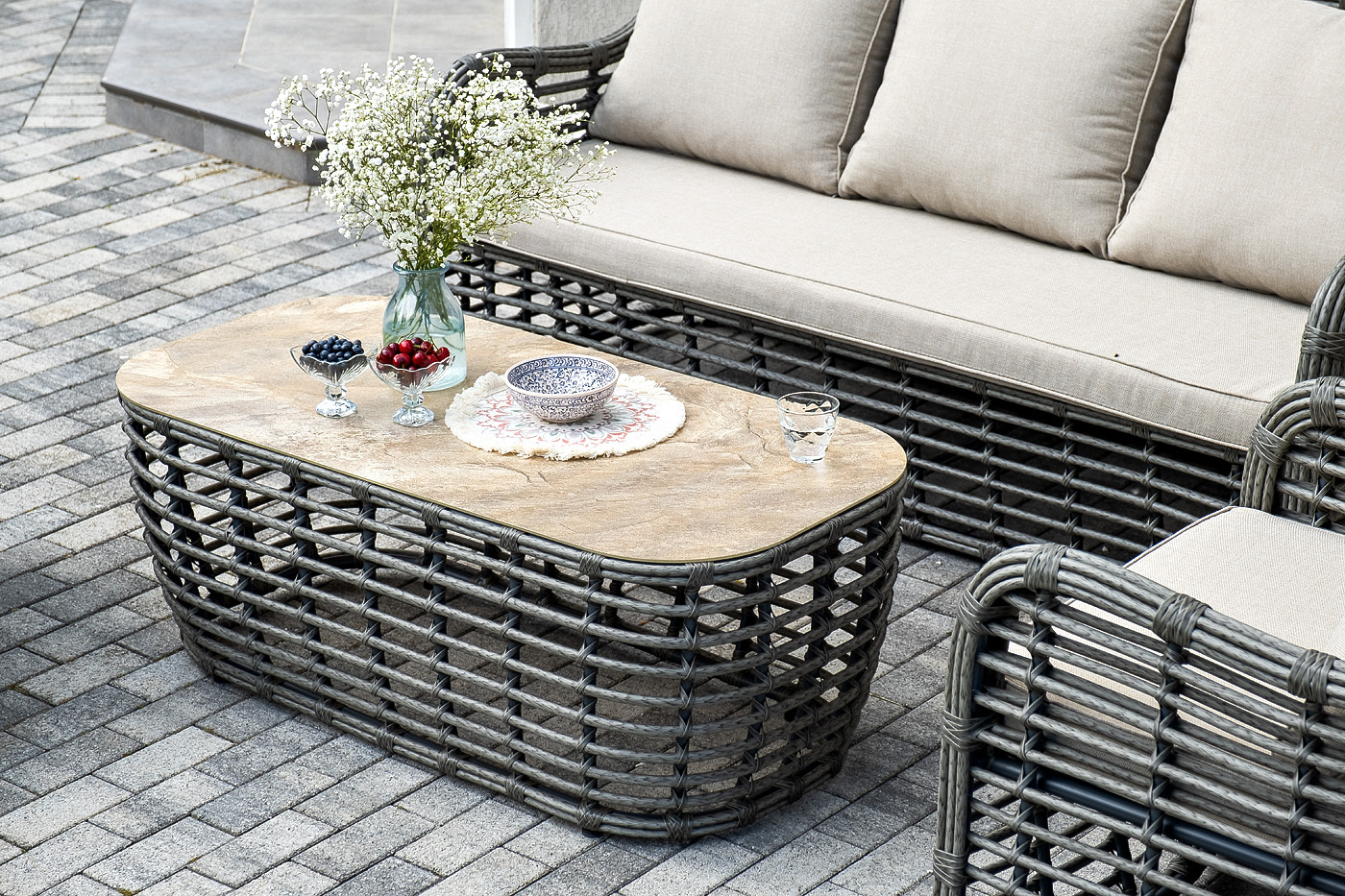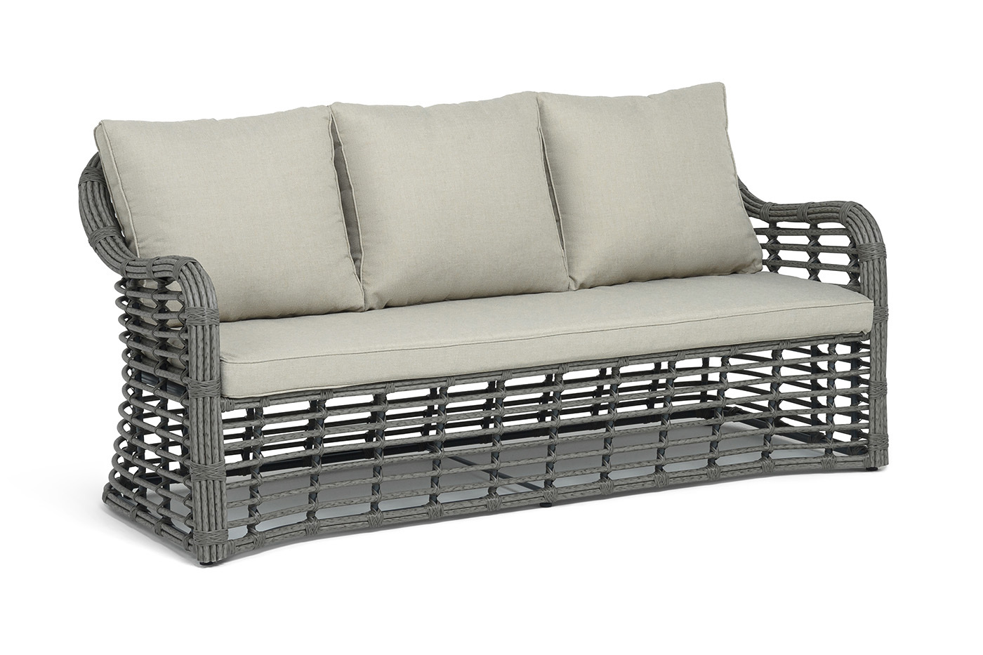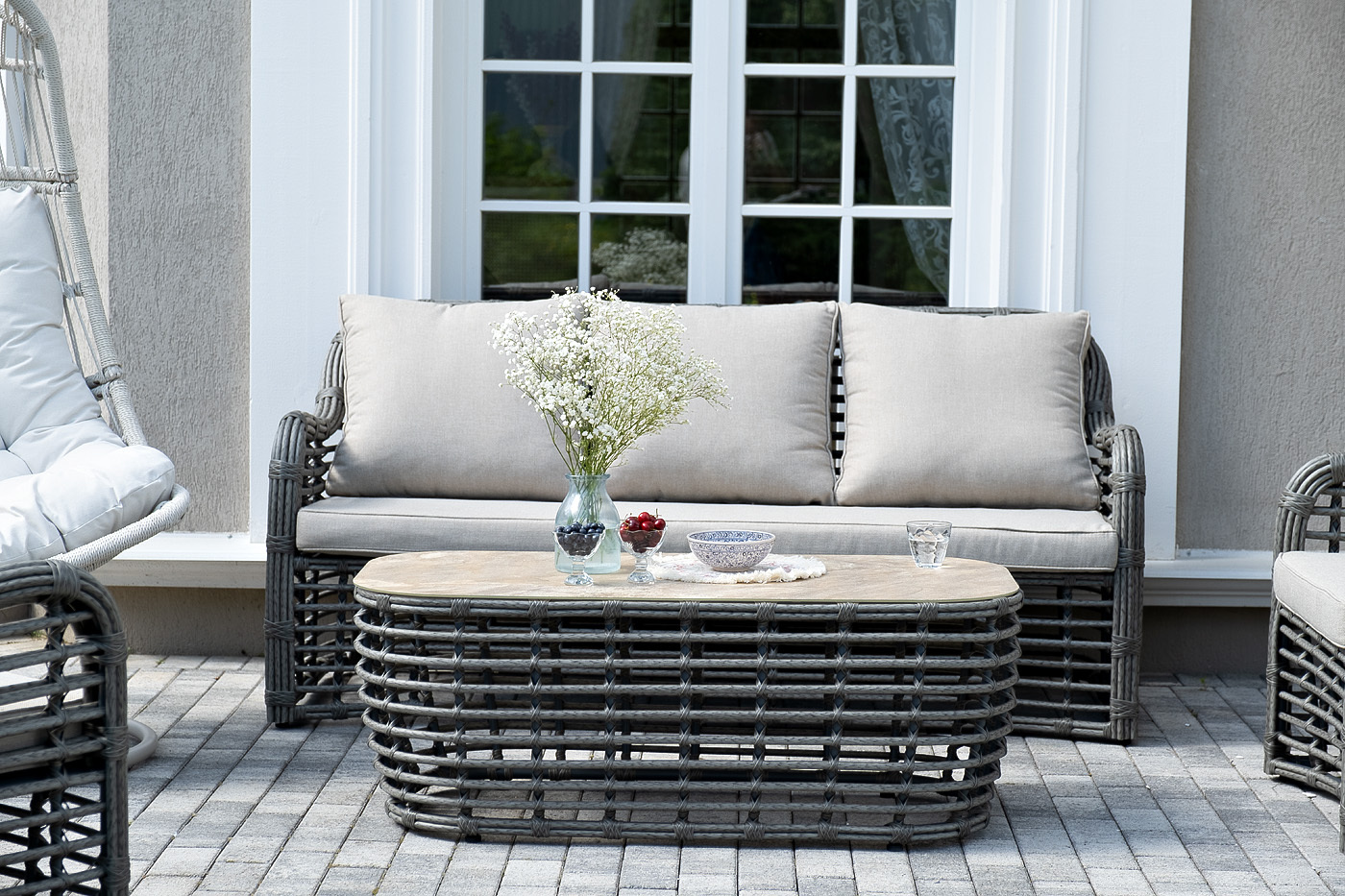 Вместительная лаунж-зона «Ницца» состоит из: - трехместного дивана – 1810×850×870 мм. - двух кресел – 77×850×870 мм. - журнального столика – 1200×600×450 мм. Модели имеют алюминиевый каркас, который оплетен вручную искусственным ротангом серого цвета. Плетеная мебель дополнена удобными подушками в бежевых чехлах. При их изготовлении используют полиэстер, плотность – 300гр/м2. Он обрабатывается влагоотталкивающей пропиткой для повышения защитных свойств материала. Журнальный столик выполнен из алюминия, вручную оплетенного круглым искусственным ротангом. Столешница из закаленного стекла толщиной 5 мм. Благодаря износостойким материалам, стол пригоден для использования на улице при любой погоде и не требует специальных условий хранения. Габариты упаковки и комплектация двух коробок: 1 кор. (диван и столик): 1840×870×870 мм. 2 кор. (два кресла): 1370×740×730 мм. "Ницца" диван из искусственного ротанга трехместный, цвет серый 1шт. 1 810Х850Х870, "Ницца" кресло из искусственного ротанга, цвет серый 2шт. 770Х850Х870, "Ницца" журнальный столик из искусственного ротанга, цвет серый 1шт. 1 200Х600Х450,Бренд | 4SIS |