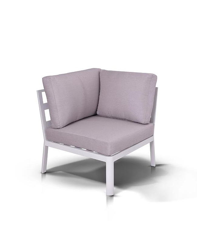 «Париж» модуль диванный угловой, алюминиевый каркас белого цвета. В комплекте с подушками бежевого цвета со съёмными чехлами. Размер: 780×780×700 мм.Бренд | 4SIS |