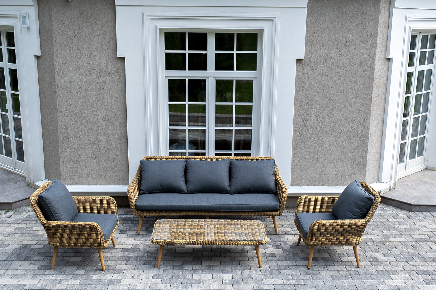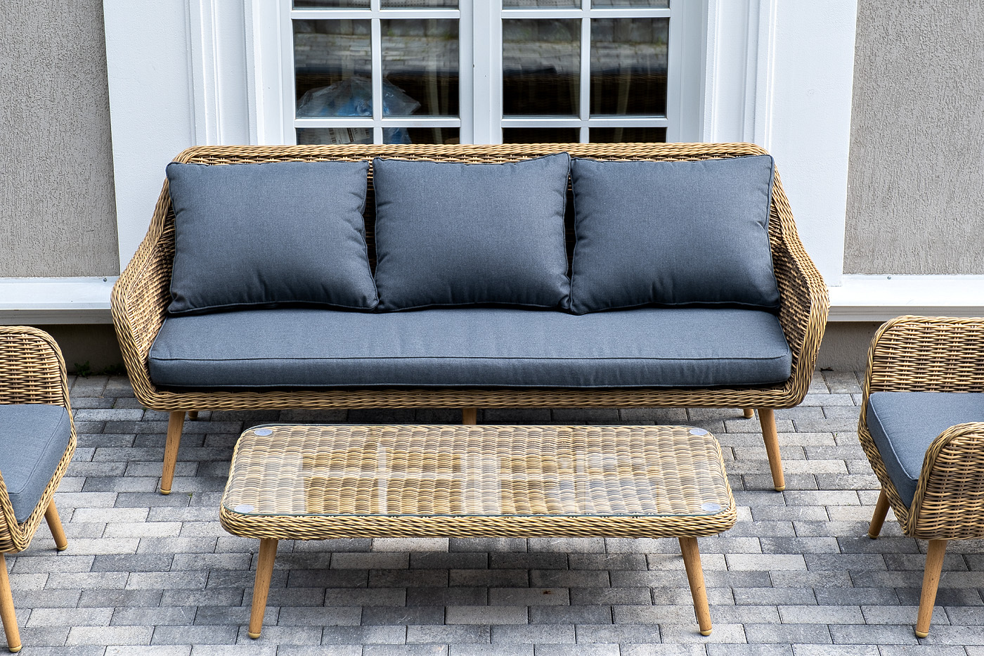 Лаунж-зона «Прованс» – это идеальный вариант оформления зоны отдыха на свежем воздухе. Рассчитана на компанию до 5 персон. Садовый комплект состоит из: - трехместного дивана, размером – 1900×800×770 мм. - двух кресел – 810×800×770 мм. - журнального столика – 1200×580×330 мм. Каркас всей группы выполнен из прочного алюминия, который оплетен круглым искусственным ротангом. Цвет – соломенный. Диван и кресла оснащены подушками со съёмными чехлами серого цвета. При изготовлении чехлов используется высокопрочный полиэстер, плотность - 300гр/м2 и влагоотталкивающая пропитка. Плетеный столик укомплектован столешницей из закаленного стекла, толщиной – 5 мм. Габариты упаковки и комплектация трёх коробок: 1 кор. (диван): 1900×540×780 мм. 2 кор. (два кресла): 900×650×800 мм. 3 кор. (журнальный столик): 1220×600×70 мм. "Прованс" диван из искусственного ротанга трехместный, цвет соломенный 1шт. 1 900Х800Х770, "Прованс" кресло из искусственного ротанга, цвет соломенный 2шт. 810Х800Х770, "Прованс" столик журнальный из ротанга, цвет соломенный 1шт. 1 200Х580Х330,Бренд | 4SIS |