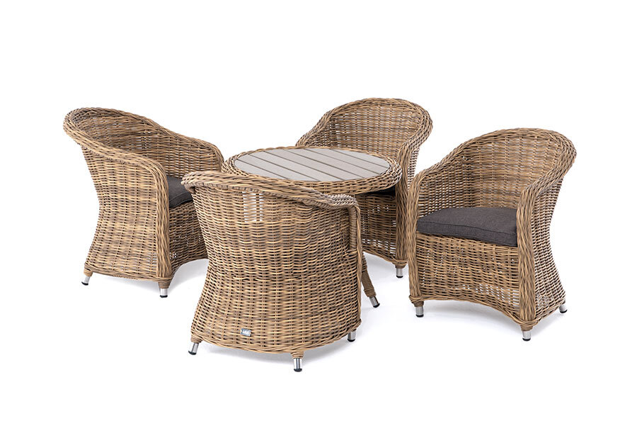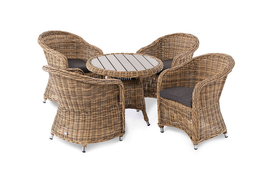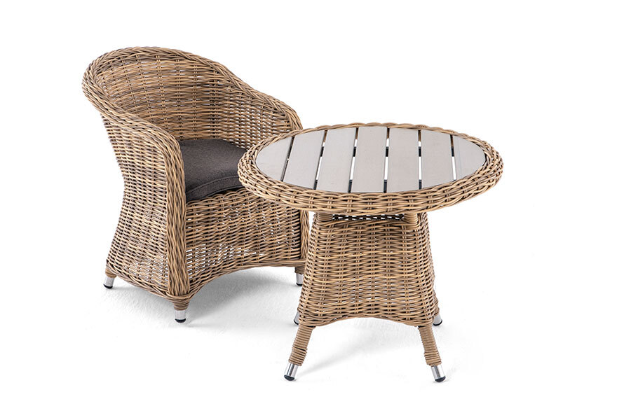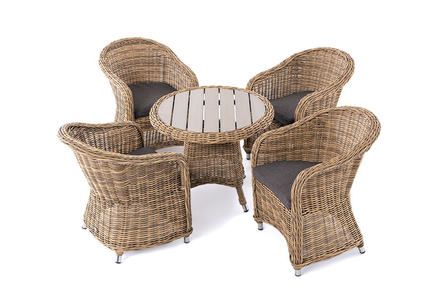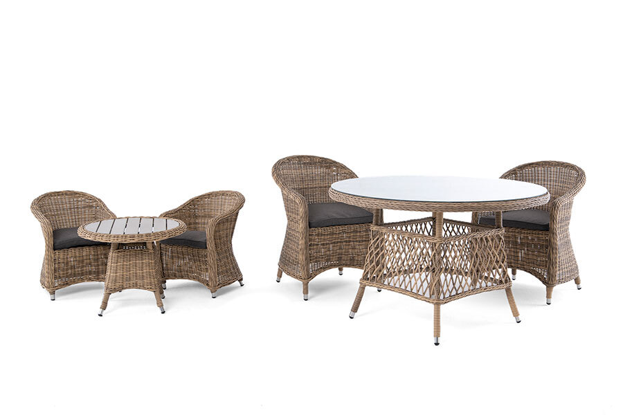 Долговечная детская обеденная группа «Тильда» для создания зоны отдыха в саду, на террасе, возле бассейна, на игровой площадке отеля. В комплект входят: кофейный столик «Равенна» (600×600×480 мм) и 4 детских кресла «Равенна» (450×530×580 мм). Каркас изготовлен из легкого алюминия, благодаря чему перемещать мебель сможет даже ребенок. В качестве декоративной оплетки использован искусственный ротанг, устойчивый к механическим повреждениях, ультрафиолету, атмосферным осадкам. Столешница изготовлена из долговечного композитного материала ДПК. Стулья укомплектованы подушками из влагостойкой полиэфирной ткани. Вы можете заказать набор частями или добавить нужные элементы. "Равенна" кресло детское плетеное, цвет соломенный 4шт. 450Х530Х580, "Равенна" кофейный стол из искусственного ротанга, цвет соломенный 1шт. 600Х600Х480,Бренд | 4SIS |
