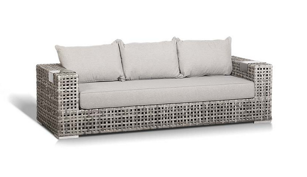Вместительная лаунж-зона «Тито» состоит из: - трехместного дивана – 2280×920×610 мм. - двух кресел – 1120×920×610 мм. - журнального столика – 1290×670×310 мм. Корпус мебели изготовлен из прочного алюминия и оплетен вручную плоским искусственным ротангом. Цвет серый. Подлокотники плетеного дивана и кресел оснащены алюминиевыми подставками, на которые можно поставить бокал или тарелку. В комплект входят серые подушки со съемными чехлами. Они пошиты из полиэстера, плотностью 300гр/м2. Защитные свойства ткани усилены влагоотталкивающей пропиткой. Журнальный столик выполнен в аналогичной технике, дополняет его стеклянная столешница – 5 мм. Она крепится на вакуумные присоски и поставляется в собранном виде. Данная модель продается только комплектом! "Тито" диван из искусственного ротанга трехместный, цвет серый 1шт. 2 280Х920Х610, "Тито" кресло из искусственного ротанга, цвет серый 2шт. 1 120Х920Х610, "Тито" журнальный столик из искусственного ротанга, цвет серый 1шт. 1 290Х670Х310,Бренд | 4SIS |