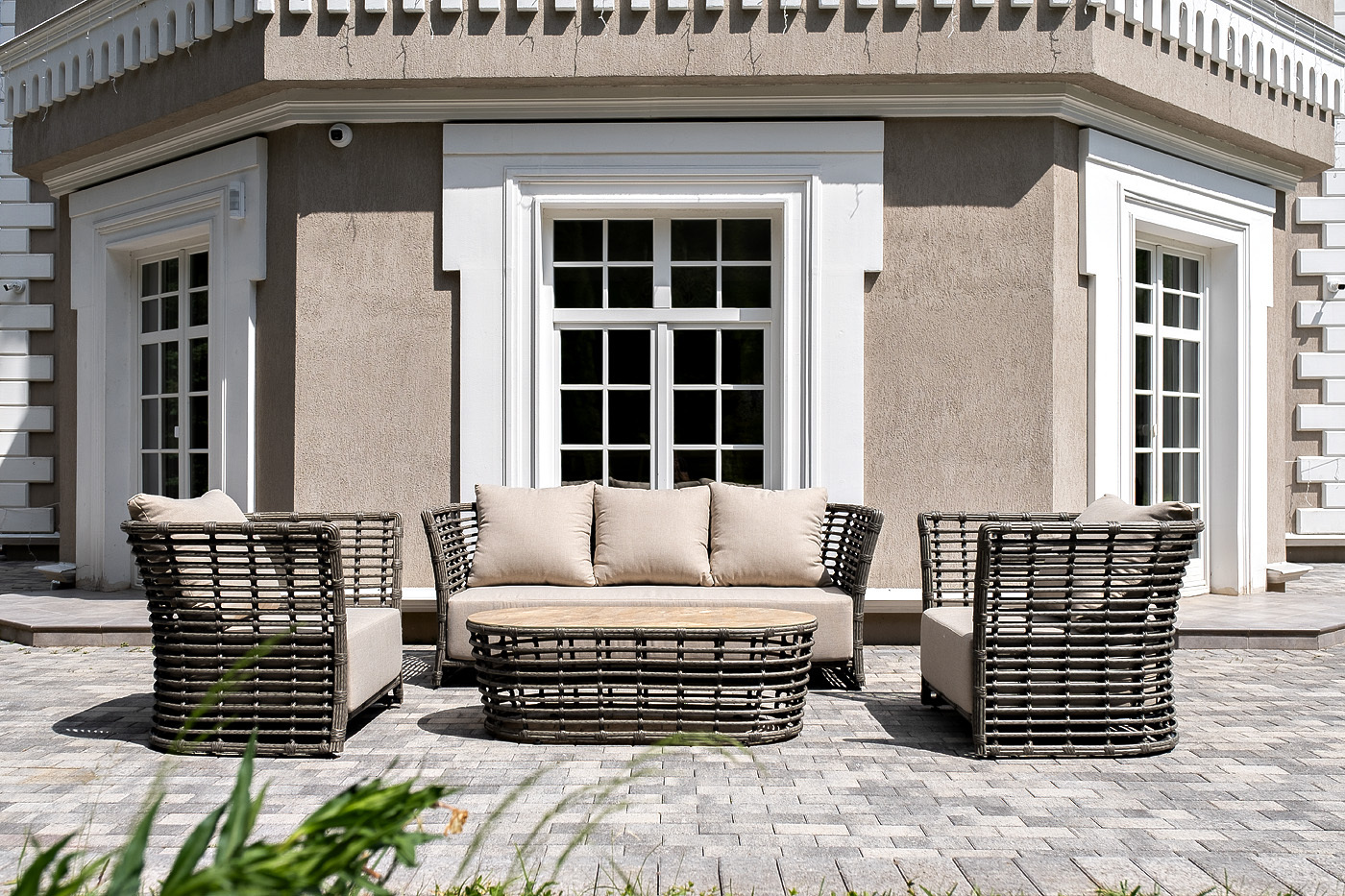 Вместительная лаунж-зона «Валенсия» состоит из: - трехместного дивана – 2020×850×800 мм. - двух кресел – 1000×850×800 мм. - журнального столика – 1270×630×420 мм. Модели имеют алюминиевый каркас, который оплетен вручную искусственным ротангом серого цвета. Плетеная мебель дополнена удобными подушками в бежевых чехлах. При их изготовлении используют полиэстер, плотность – 300гр/м2. Он обрабатывается влагоотталкивающей пропиткой для повышения защитных свойств материала. Журнальный столик выполнен из алюминия, вручную оплетенного круглым искусственным ротангом. Столешница из закаленного стекла толщиной 5 мм. Благодаря износостойким материалам, стол пригоден для использования на улице при любой погоде и не требует специальных условий хранения. Габариты упаковки и комплектация двух коробок: 1 кор. (диван и столик): 2050×870×860 мм. 2 кор. (два кресла): 1620×870×1030 мм. "Валенсия" диван из искусственного ротанга трехместный, цвет серый 1шт. 2 020Х850Х800, "Валенсия" кресло из искусственного ротанга, цвет серый 2шт. 1 000Х850Х800, "Валенсия" журнальный столик из искусственного ротанга, цвет серый 1шт. 1 270Х630Х420,Бренд | 4SIS |