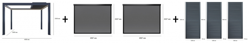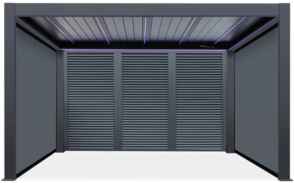 Pergola 150 Series- это инновационная моторизованная пергола, сочетающая в себе элегантный дизайн и интеллектуальные технологии. Алюминиевые верхние жалюзи с плавной регулировкой угла наклона управляются с помощью пульта дистанционного управления, позволяя без усилий контролировать уровень освещенности и тени. Линейный, минималистичный профиль перголы гармонично вписывается в современные архитектурные решения, подчеркивая стиль любого outdoor-пространства. Встроенная LED-подсветка с теплым и холодным светом создает уютную атмосферу в вечернее время, превращая террасу, патио или зону отдыха в многофункциональное пространство для любого времени суток. Дополнительные опции - раздвижные стеклянные панели, боковые шторы, жалюзи и экраны - обеспечивают защиту от ветра, дождя и посторонних взглядов, гарантируя комфорт и приватность в любую погоду. Pergola 150 Series - это безупречное сочетание технологий, дизайна и функциональности для самого требовательного клиента. Состав комплекта: Пергола моторизованная 3х4 м +LED-подсветка, размер:3000х4000х2500 мм - 1 шт. Экран текстиленовый3 м, размер:2697х2327 мм - 2 шт. Жалюзи металлические,размер:1246х50х2220 мм - 3 шт. Особенности перголы: Материал: окрашенный алюминиевый сплав: 6063-T5. Это универсальный материал с превосходной поверхностью и достойной прочностью, разумный выбор для архитектурных и легких конструкционных применений, особенно когда важны эстетика и коррозионная стойкость. Цвет: тёмно-серый. Двойные алюминиевые жалюзи с порошковым покрытием. Размер:181х47х1.2 мм. Двухцветная LED подсветка (теплый и холодный цвет). Стойка: 150х150х2.0мм. Основная балка: 175х40х1.8 мм / 173x40x1.6 мм. Желоб: 82х55х1.4 мм. Дистанционное управление. Особенности экранов: Полузатеняющие. Застежка-молния. Текстилен (78% ПВХ и 22% полиэстера). Цвет алюминия: порошковое покрытие темно-серого цвета. Особенности жалюзи: Алюминиевые жалюзи: 2220x1246x50 мм. Алюминиевые соединительные планки: 2220x525x25 мм. Порошковое покрытие темно-серого цветаRAL 7016. Тип фиксации: неподвижная,с помощью регулировочных винтов. Преимущества: водонепроницаемость и энергосбережение. Инструкция по сборке. Для уточнения всех возможных вариантов материала и цвета данного изделия обращайтесь к нашим менеджерам.Характеристики
