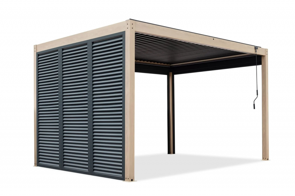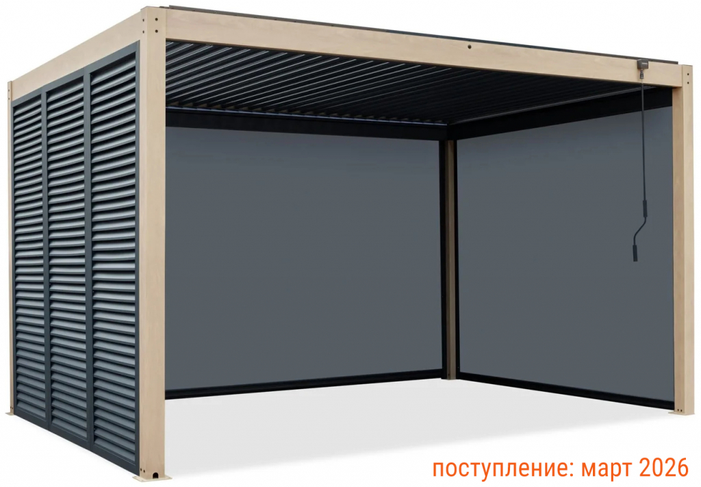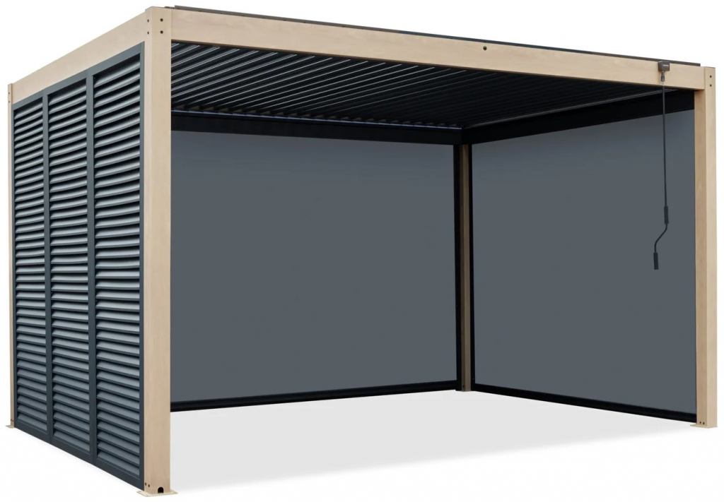 Оцените простоту дизайна алюминиевой перголыSKYPergs Plus с порошковым покрытием. Усиленная крыша выдерживает до 100 кг/м² снега, а регулируемая конструкция с жалюзи обеспечивает комфорт круглый год и в любую погоду. Водонепроницаемая конструкция обеспечивает эффективный дренаж для долговечности в любую погоду. Алюминиевые верхние жалюзи срегулировкой угла наклона управляются с помощью ручной рукоятки, позволяя без усилий контролировать уровень освещенности и тени. Линейный, минималистичный профиль перголы гармонично вписывается в современные архитектурные решения, подчеркивая стиль любого outdoor-пространства. Встроенная разноцветная LED-подсветка создает уютную атмосферу в вечернее время, превращая террасу, патио или зону отдыха в многофункциональное пространство для любого времени суток. Дополнительные опции - раздвижные стеклянные панели, боковые шторы, жалюзи и экраны - обеспечивают защиту от ветра, дождя и посторонних взглядов, гарантируя комфорт и приватность в любую погоду. Состав комплекта: Пергола металлическая 3х4 м +LED-подсветка, размер:3000х4000х2400 мм - 1 шт. Экран текстиленовый3 м, размер:2622х2242 мм - 1 шт. Экран текстиленовый 4м, размер:3702х2242 мм - 1 шт. Жалюзивертикальные металлические,размер:886х50х2220 мм - 3 шт. Особенности перголы: Материал: окрашенный алюминиевый сплав: 6063-T5. Это универсальный материал с превосходной поверхностью и достойной прочностью, разумный выбор для архитектурных и легких конструкционных применений, особенно когда важны эстетика и коррозионная стойкость. Цвет: Fresh Teak (эффект "под дерево"). Двойные алюминиевые жалюзи с порошковым покрытием на крыше. Размер:130х30х1.3 мм. Разноцветная LED-подсветка (7 цветов). Стойка: 100х100х1.5 мм. Основная балка: 150х62х1.5 мм. Желоб: 58х56х1.3 мм. Управление: ручное, с помощью рукоятки длиной 1,5 м. Особенности экранов: Полузатеняющие. Застежка-молния. Текстилен (78% ПВХ и 22% полиэстера). Цвет алюминия: порошковое покрытие темно-серого цвета. Особенности жалюзи: Алюминиевые жалюзи: 2220x886x50 мм. Алюминиевые соединительные планки: 2220x525x25 мм. Порошковое покрытие темно-серого цветаRAL 7016. Тип фиксации: неподвижная,с помощью регулировочных винтов. Преимущества: водонепроницаемость и энергосбережение. Инструкция по сборке. Для уточнения всех возможных вариантов материала и цвета данного изделия обращайтесь к нашим менеджерам.Характеристики