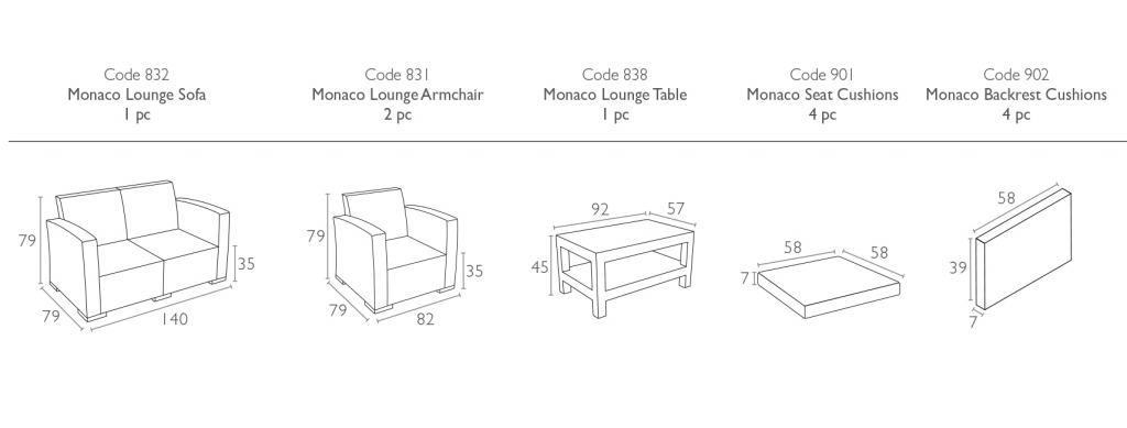 Комплект пластиковой плетеной мебели Monaco Lounge изготовлен из прочного погодостойкого пластика, армированного стекловолокном. Комплект пластиковой плетеной мебели Monaco Lounge с имитацией плетения натурального ротанга станет отличным выбором для обстановки лаунж-зоны в любом заведении. Благодаря использованию высококачественных материалов он долгое время не теряет своего привлекательного внешнего вида, даже несмотря на активную эксплуатацию. Благодаря отсутствию металлического каркаса и устойчивости к ультрафиолетовому воздействию комплект плетеной мебели из пластика Monaco Lounge можно использовать в том числе и на открытых площадках. В состав комплекта входит: 1. Пластиковое плетеное кресло с подушкой, размер: 820х790х790 мм - 2 шт., 2. Пластиковый плетеный диван с подушкой, размер: 1400х790х790 мм - 1 шт., 3. Пластиковый плетеный журнальный стол, размер: 920х570х450 мм - 1 шт. Особенности: - мебель изготовлена из прочного погодостойкого пластика с имитацией плетения натурального ротанга; - не имеет металлического каркаса - не ржавеет, не поддается коррозии; - устойчива к ультрафиолету и атмосферным осадкам, выдерживает минусовую температуру до 20 градусов; - армирован стекловолокном; Количество упаковок: 4 шт.Характеристики