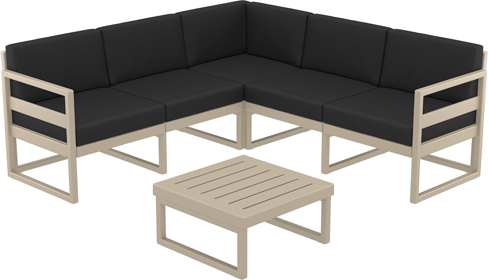 Комплект угловой пластиковой мебели Siesta Contract Mykonos, бежевый, черный