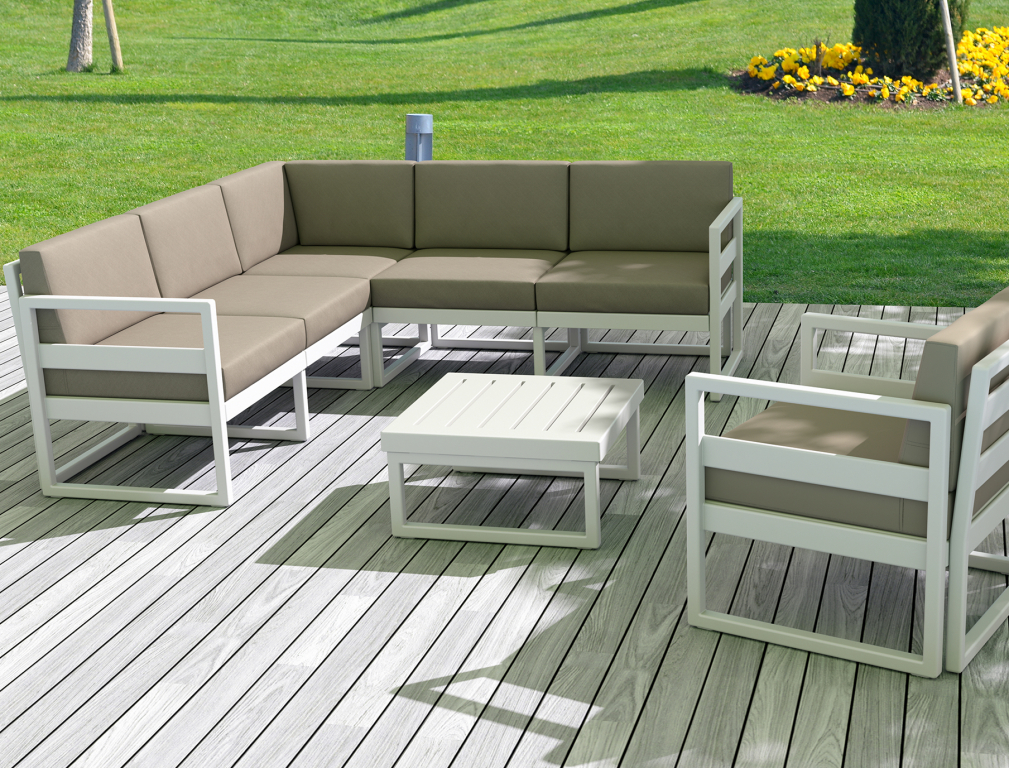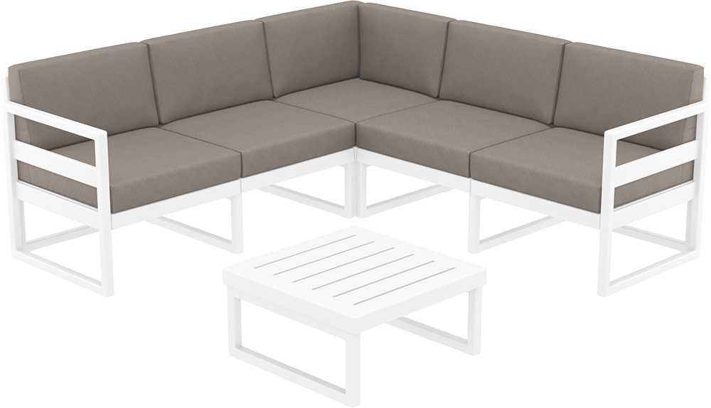 Комплект угловой пластиковой мебели Siesta Contract Mykonos, белый, светло-коричневый