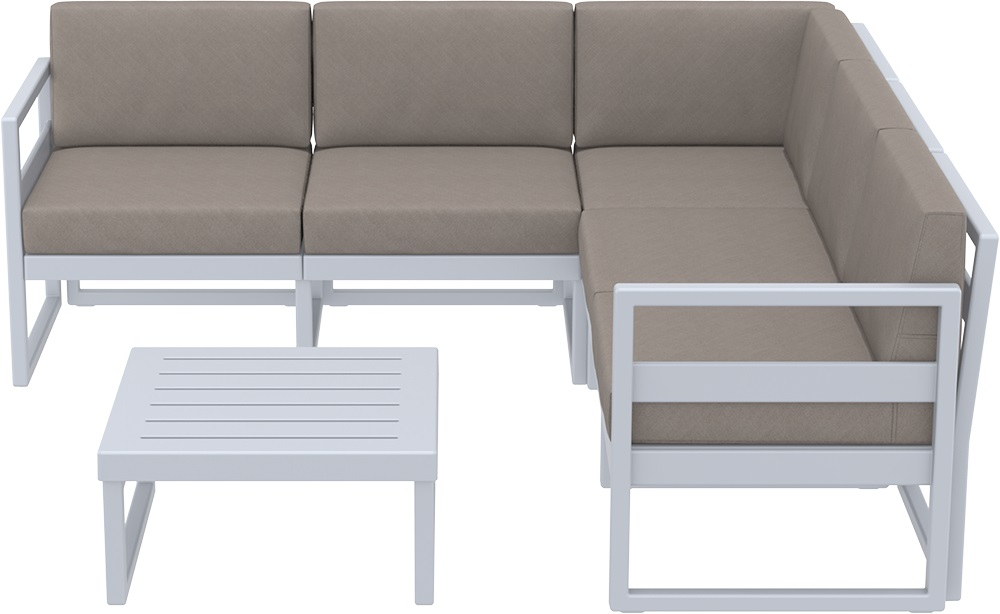 Вы можете купить Комплект угловой пластиковой мебели Siesta Contract Mykonos, серебристый, светло-коричневый оптом в нашем магазине, предложим цену с оптовой скидкой.