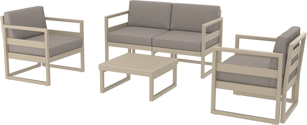 Вы можете купить Комплект пластиковой мебели Siesta Contract Mykonos, бежевый, светло-коричневый оптом в нашем магазине, предложим цену с оптовой скидкой.