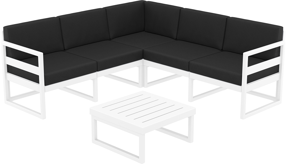 Вы можете купить Комплект угловой пластиковой мебели Siesta Contract Mykonos, белый, черный оптом в нашем магазине, предложим цену с оптовой скидкой.