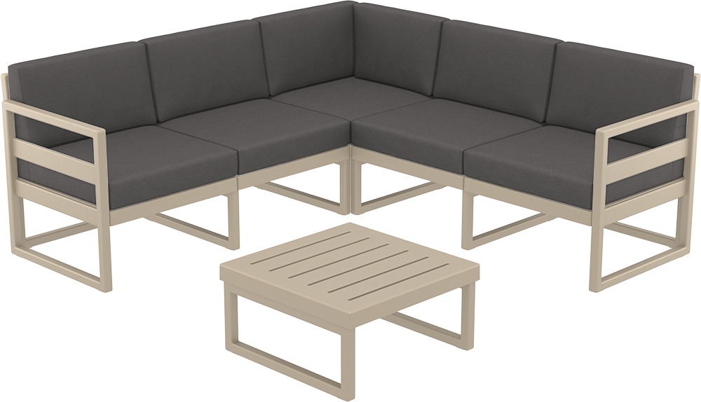 Комплект угловой пластиковой мебели Siesta Contract Mykonos, бежевый, темно-серый