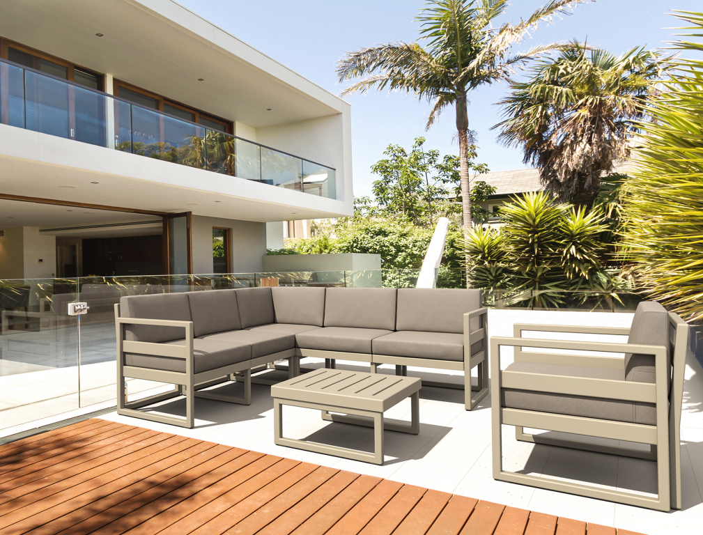 Вы можете купить Комплект угловой пластиковой мебели Siesta Contract Mykonos, бежевый, светло-коричневый оптом в нашем магазине, предложим цену с оптовой скидкой.