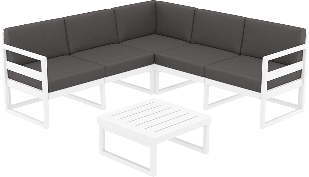 Комплект угловой пластиковой мебели Siesta Contract Mykonos, белый, темно-серый