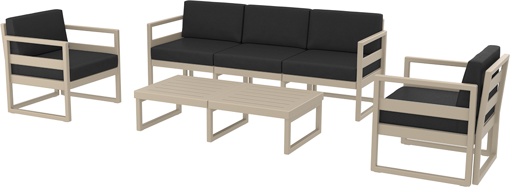 Комплект пластиковой мебели Siesta Contract Mykonos XL, бежевый, черный