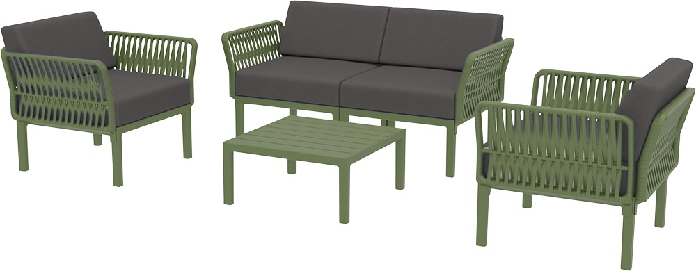 Комплект пластиковой мебели Siesta Contract Portofino Lounge, оливковый, темно-серый