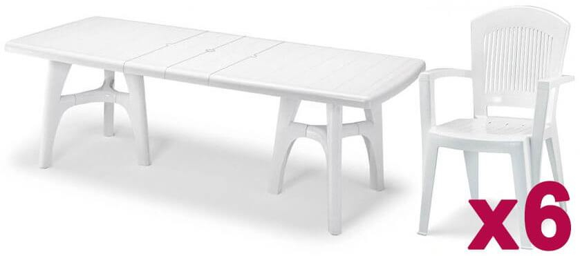 Комплект пластиковой мебели President Elegant состоит из шестикресел Super Elegant Monoblocи стола President Tris,он станет отличным выбором для обстановки фуд-кортов, площадок возле бассейна, зоны отдыха в саду. Благодаря использованию высококачественных материалов, мебель долгое время не теряет своего привлекательного внешнего вида, даже несмотря на активную эксплуатацию. Благодаря отсутствию металлического каркаса и устойчивости к ультрафиолетовому воздействию, комплект President Elegant можно использовать в том числе и на открытых площадках. Размер стола: 1700/1950/2200х950х730 мм. Размер кресла: 600х600х910мм. Особенности President Tris: Размеры стола позволяют собрать за ним большую, дружную компанию, а при необходимости столешницу можно увеличить в длину с помощью двух съемных частей, шириной по 25 см. Таким образом длина стола может быть 170, 195 и 220 см. Пластиковый раздвижной стол имеет в центре две съемные части, которые очень удобно хранить, закрепленными под столешницей. Ножки столика соединены крест-накрест, что даёт особую устойчивость столу. Стол сделан из прочного материала пластика, который легкий в уходе и долговечный в эксплуатации. Стол можно хранить в саду под открытом небом и в любую погоду. Стол легко собирается и разбирается, его размеры позволяют хранить его в любом удобном для Вас месте. Особенности кресла Super Elegant Monobloc: Великолепное пластиковое кресло Elegant, выполненное в соответствии со всеми европейскими стандартами качества и безопасности, гармонично впишется в любой интерьера вашего загородного дома или дачного участка. Оно поражает благородством форм, продуманной до мелочей конструкцией и невероятной прочностью.Характеристики