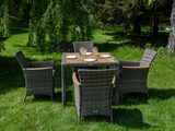 Комплектация и габариты: Кресла ( 4 шт) - 60х60х88 см Стол - 90х90х75 см Материалы: Материал комплекта - искусственный ротанг (ручного плетения) Материал каркаса – сталь, окрашенная порошковым методом Материал столешницы - поливуд (искусственное дерево) Материал чехла на подушки - олефин (водоотталкивающая ткань) Материал наполнителя подушек для сидения - поролон Цвет комплекта - серый Цвет подушек - серый Дополнительная информация: Количество посадочных мест – 4 человек Максимальная нагрузка на посадочное место - 150 кг Чехлы съемные - да Температурный режим - от -50?C до +50?C Сочетается с комплектами бренда ROYAL FAMILY из искусственного ротанга в сером цвете Накладки на ножки - да (пластиковые) Категория ротанга - первичная Держатели и крепления подушек зависят от поставки и не являются неотъемлемой частью комплекта Гарантия и эксплуатация: Гарантийный срок - 1 год Эксплуатационный срок - 10 лет Страна производитель - КитайХарактеристики