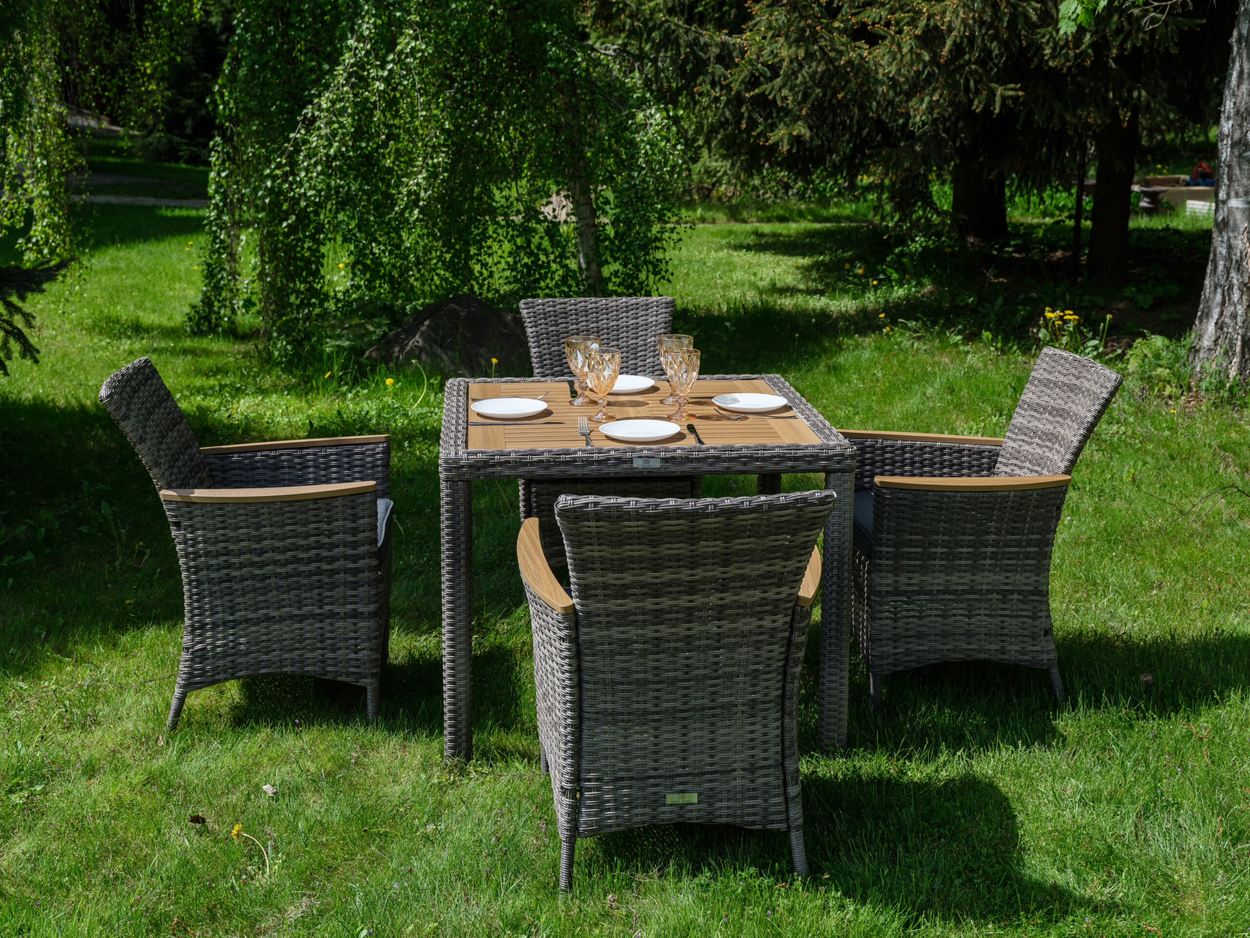 Вы можете купить Обеденный комплект ROYAL FAMILY AMELIA серого цвета на 4 персоны оптом в нашем магазине, предложим цену с оптовой скидкой.