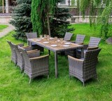 Комплектация и габариты: Кресла ( 8 шт) - 60х60х88 см Обеденный стол - 200х90х75 см Материалы: Материал комплекта - искусственный ротанг (ручного плетения) Материал каркаса – сталь, окрашенная порошковым методом Материал столешницы - поливуд (искусственное дерево) Материал чехла на подушки - олефин (водоотталкивающая ткань) Материал наполнителя подушек для сидения - поролон Цвет комплекта - серый Цвет подушек - серый Дополнительная информация: Количество посадочных мест – 8 человек Максимальная нагрузка на посадочное место - 150 кг Чехлы съемные - да Температурный режим - от -50?C до +50?C Сочетается с комплектами бренда ROYAL FAMILY из искусственного ротанга в сером цвете Накладки на ножки - да (пластиковые) Категория ротанга - первичная Держатели и крепления подушек зависят от поставки и не являются неотъемлемой частью комплекта Гарантия и эксплуатация: Гарантийный срок - 1 год Эксплуатационный срок - 10 лет Страна производитель - КитайХарактеристики