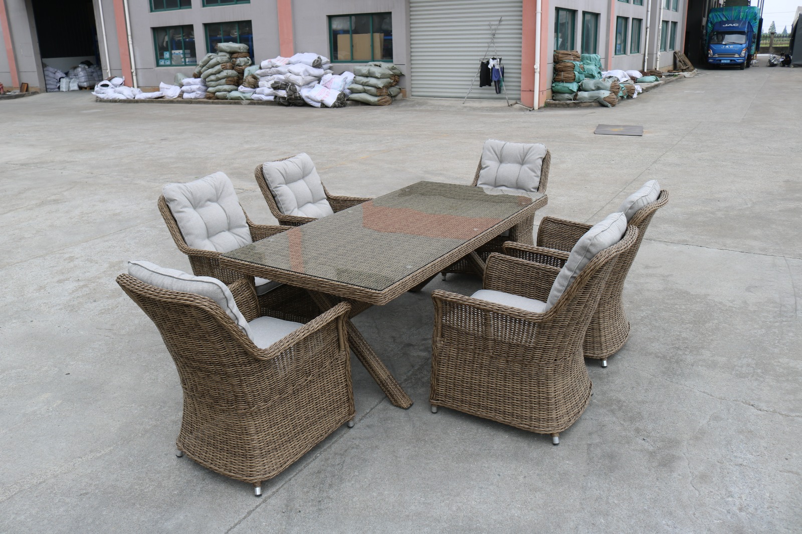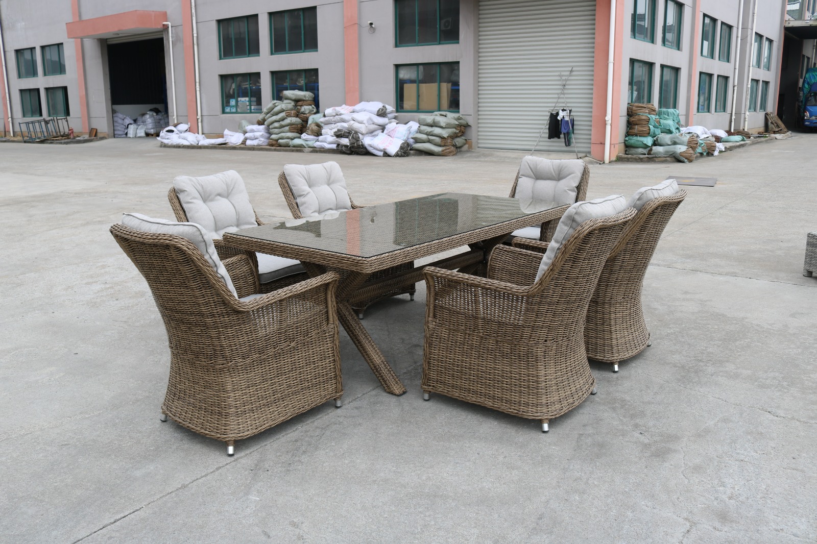 Материалы: Материал комплекта - искусственный ротанг (ручного плетения) Материал каркаса - алюминий Материал столешницы - закаленное стекло Материал чехла на подушки - олефин (водоотталкивающая ткань) Материал наполнителя подушек под спину - синтетический пух Материал наполнителя подушек для сидения - пенополеуретан Цвет комплекта - коричневый Цвет подушек - Светло-серые Дополнительная информация: Количество посадочных мест - 6 человек Максимальная нагрузка на посадочное место - 150 кг Чехлы съемные - да Температурный режим - от -50?C до +50?C Категория ротанга - первичная Гарантия и эксплуатация: Гарантийный срок - 1 год Эксплуатационный срок - 5 лет Страна производитель - КитайХарактеристики