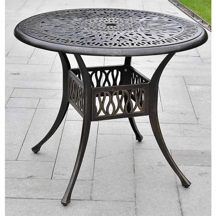 Круглый стол Harold имеет диаметр 91 см, что позволяет комфортно разместиться семье из 4 человек. Литой алюминий, из которого сделана такая садовая мебель, не ржавеет и может использоваться как в доме, так и на улице.