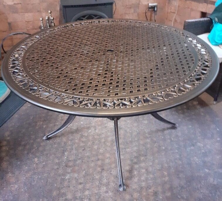 Круглый садовый стол из литого алюминия на 6 персон прекрасно подойдет для террасы, беседки, уличного кафе или ресторана. Такие металлические столы из алюминия рассчитаны на круглогодичную эксплуатацию, им не страшны перепады температур и различные погодные осадки, они не ржавеют и могут использоваться на улице.