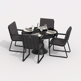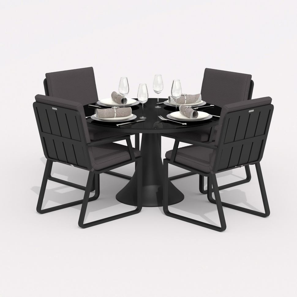 Обеденная группа Ideal Patio ДИВА АЛЬБА каркас карбон, стол стекло диа 110, ткань антрацит