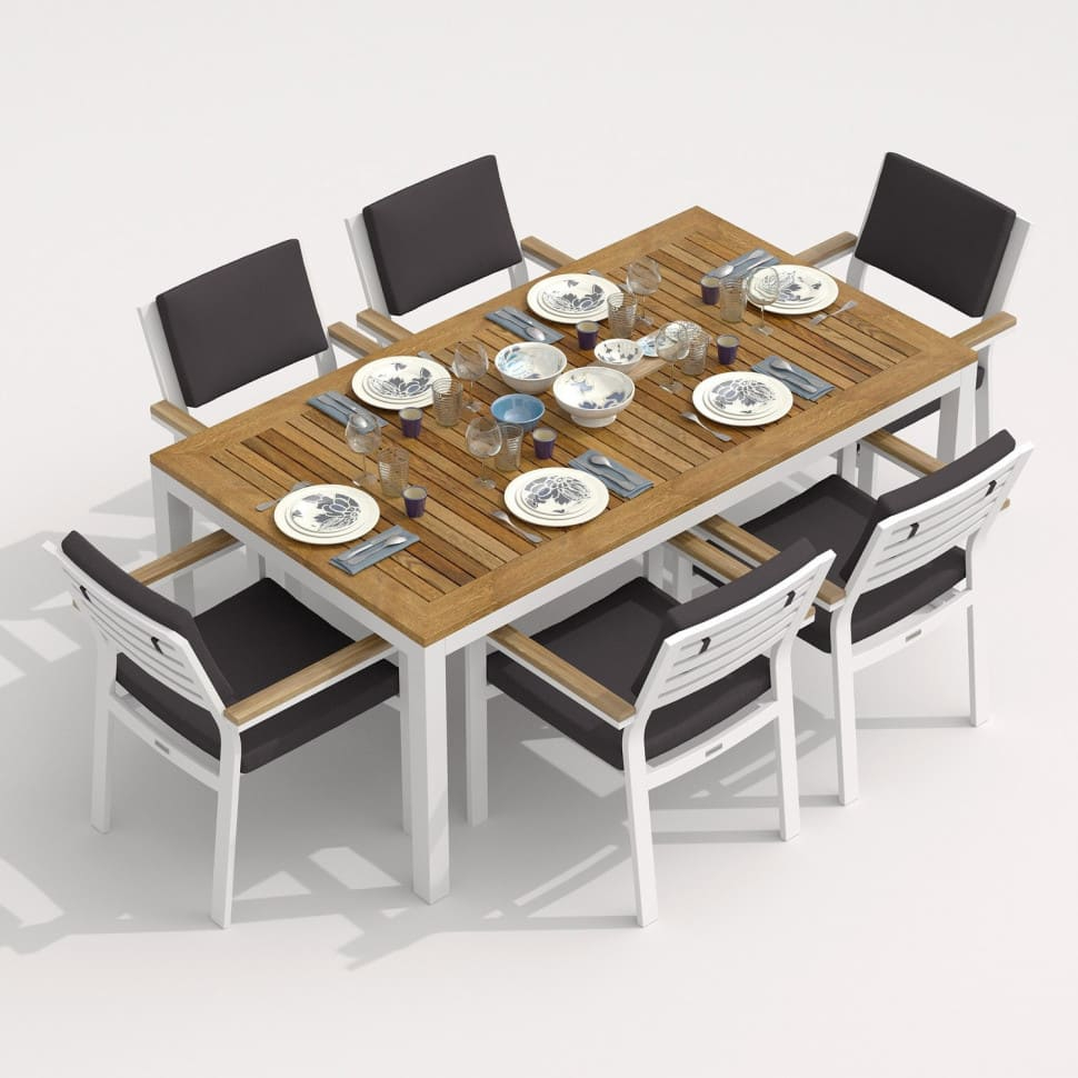 Обеденная группа Ideal Patio ТЕЛЛА БОНТА каркас белый, стол тик 180, ткань антрацит