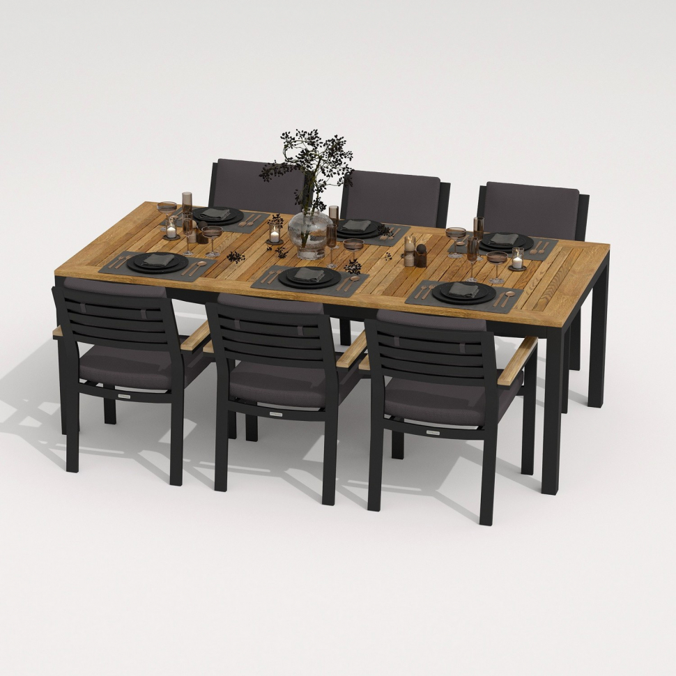 Обеденная группа Ideal Patio ТЕЛЛА БОНТА каркас карбон, стол тик 220, ткань антрацит