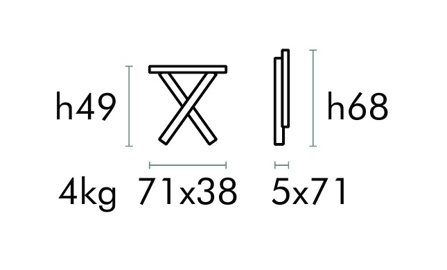 Столик металлический складной кофейный Magnani Small Table, серебристый Кофейный столикдля бассейнов предлагает более качественный сервис для клиентов, и отлично подходит для использования в зонах отдыха. Его можно сложить, чтобы значительно уменьшить необходимое пространство для хранения. Особенности модели: Размеры: в открытом состоянии (ширина - 380 мм, высота - 490мм, длина - 710мм); в закрытом состоянии (ширина - 380 мм, высота - 6 мм, длина - 710 мм). Каркас выполнен из анодированного алюминия толщиной 20 мм. Перед сборкой все детали подвергаются анодированию (процесс сертифицирован QUALANOD). Все элементы собраны с использованием деталейиз нержавеющей стали AISI 304 и шайб из AISI 316. Варианты отделки каркаса:анодированный серебристый. Варианты за дополнительную стоимость: анодированный бронзовый, глянцевый белый, окрашенный бежевый, антрацит и другие цвета по палитре RAL. Столики с отделками: окрашенный бежевый, антрацит и другие цвета по палитре RAL доступны для заказа от 50 штук. Упаковка: столик упаковывается вкартоннуюкоробку 720x130x630 мм. Количество в упаковке: 2 шт. Цена на сайте указана за модельс анодированным серебристым каркасом. Цены на другие модели и дополнительную информацию уточняйте у менеджеров.