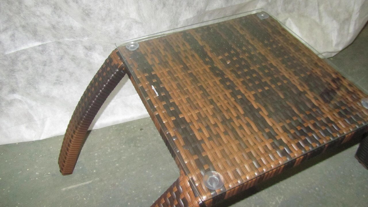 Стол плетеный из искусственного ротанга со стеклом для шезлонга Brisa. Небольшой, но очень удобный столик предназначен для любых видов шезлонгов.