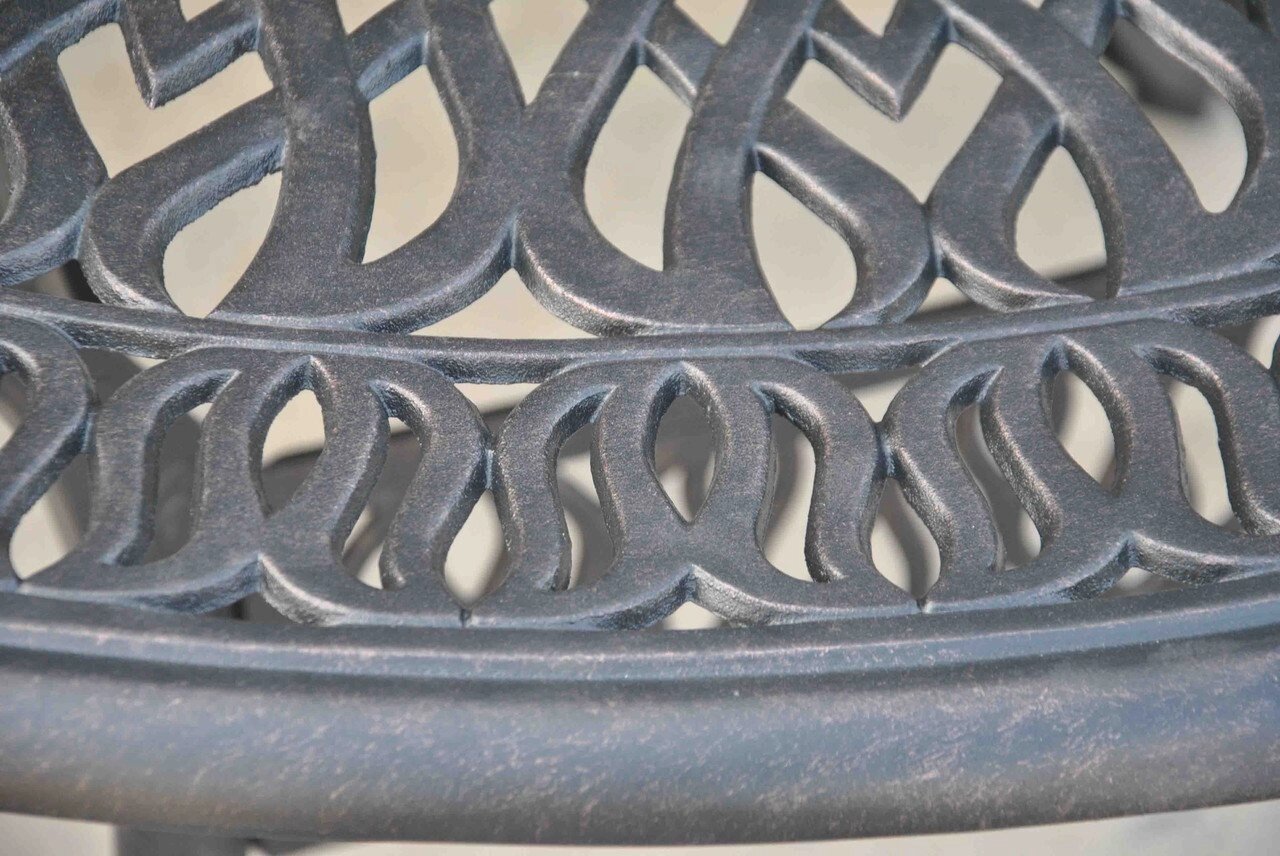 Круглый металлический стол из литого алюминия очень вместительный и удобный. Такая садовая мебель из металла легкая, в отличии от чугунной или кованой, прекрасно смотрится как на улице, так и в доме. Цвет: бронзовый графит (фото 2). Размеры и вес: 150х150х73 см, 27 кг, 0,28 м/3Характеристики