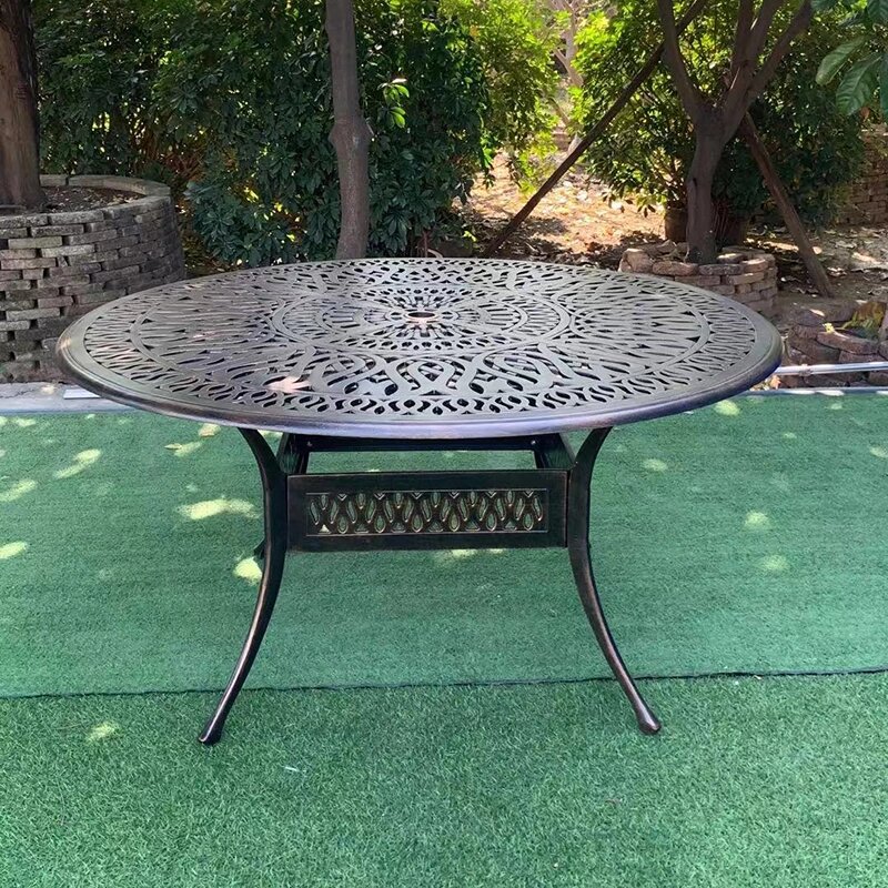 Круглый металлический стол из литого алюминия Henry 150 очень вместителен и рассчитан на компанию до 8 человек. Такой литой алюминиевый стол преобразит вашу террасу или сад, он сочетает в себе изящность и прочность, не боится влаги, перепадов температур, не требует специального хранения и ухода. Цвет: бронзовый графит (фото 2). Размеры и вес: 150х150х73 см, 30 кг.
