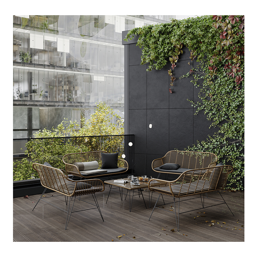 Коллекция уличной мебели из искусственного ротанга Vetle поможет создать уютный уголок, где время замирает, позволяя насладиться моментом. Каждый предмет призван дарить комфорт и украшать собой любое пространство, будь то садовый участок, терраса или кафе на свежем воздухе. Наши стулья, банкетки и столики выполнены с вниманием к деталям и любовью к дизайну. Приятный бонус – мягкие подушки с наполнителем из быстросохнущей пены, которые обеспечивают дополнительное удобство во время отдыха под открытым небом. Искусственный ротанг, с его прекрасными эксплуатационными характеристиками, и специальное покрытие голландской фирмы AkzoNobel делают мебель устойчивой к погодным условиям и долговечной.