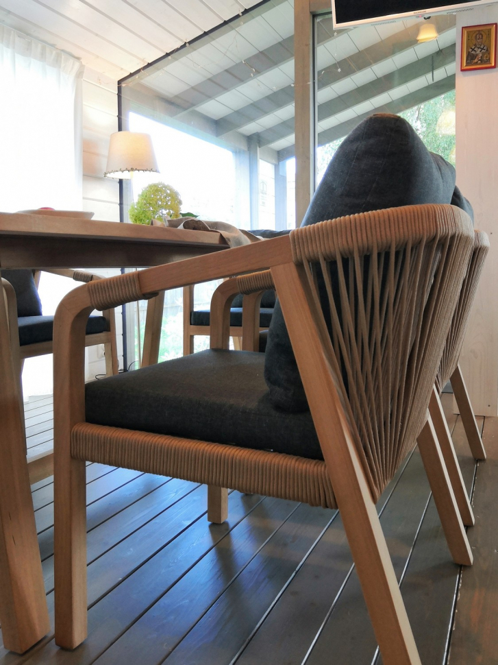 Мебель из тика с использованием веревочного плетения из роупа (аналог яхтенной веревки). Узнаваемая классика в новом премиальном исполнении.