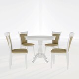 Обеденная группа состоит из стола Фабрицио и 4 стульев Тулон. Круглый стол на массивной резной опоре. Столешница раскладывается при помощи удобного механизма. Максимальная длина стола - 112см. Изготовлен стол из массива березы - очень прочного и долговечного материала. Мягкое сиденье стула обито прочной мебельной тканью.Спинка стула изящно изогнута, что делает его эстетически более привлекательным, а также создает естественную поддержку для спины и гарантирует комфортное времяпровождение.Характеристики