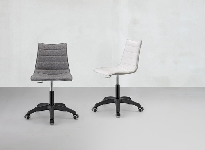 Дизайн:Luisa Battaglia. Пластиковый стул ZeusPop на колесах с корпусом из поликарбоната со стеганой обивкой идеально впишется как в домашний кабинет, так и в офисное пространство. Особенности: Поворотный механизм, механизм регулировки высоты 820-950мм. База выполнена из полированного алюминия с покрытием из нейлона. 5 колёс для простого перемещения. Корпус изперерабатываемого поликарбоната Стеганая обивкавыполнена из искусственной кожи. Также доступны варианты обивки из ткани.Доступные категории: T, EP. Данная модель подходит для использования внутри помещения. Открыть каталог отделоки обивок. Открыть технические характеристики.Характеристики