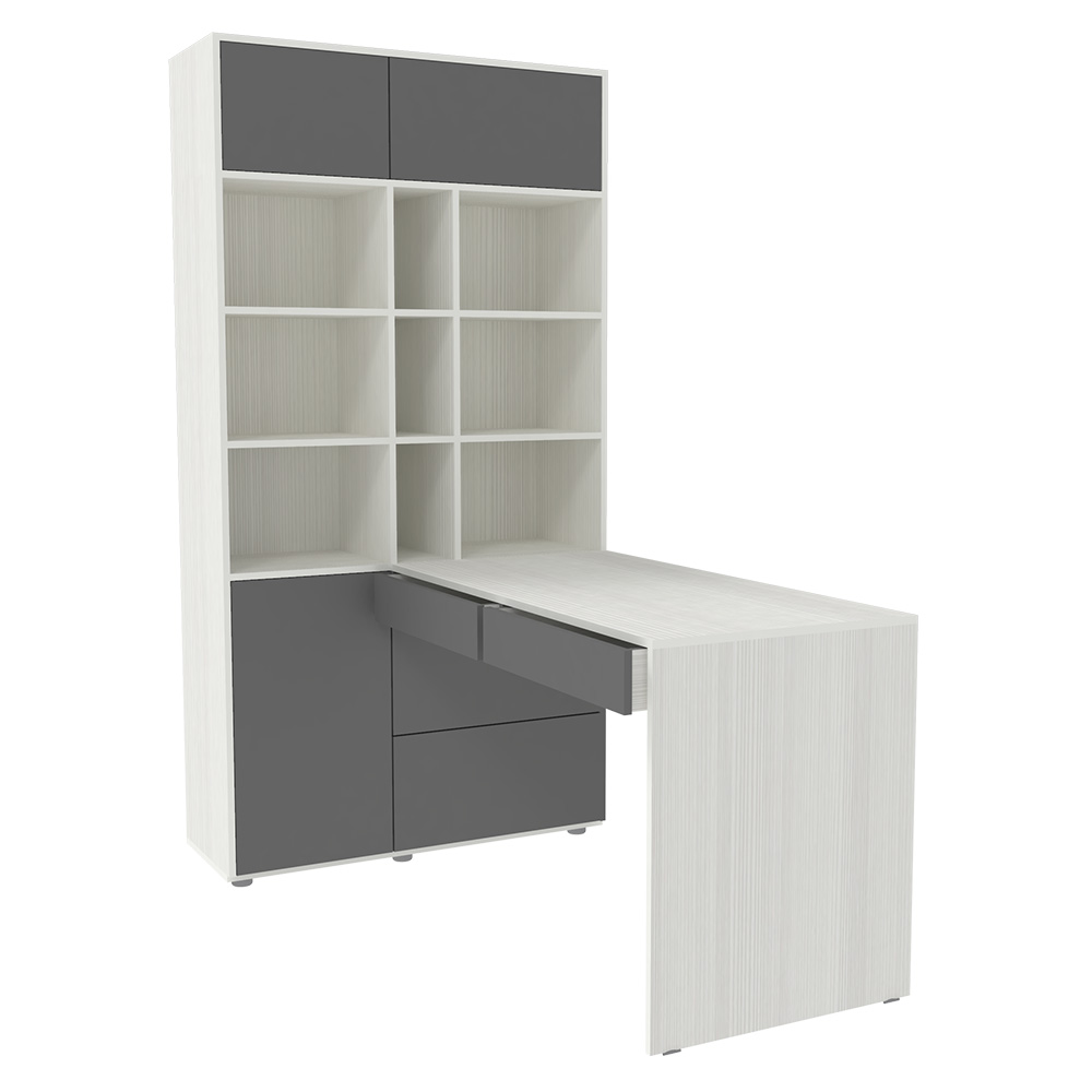 Стол письменный со стеллажом 1000 Белое Дерево Темно-серый