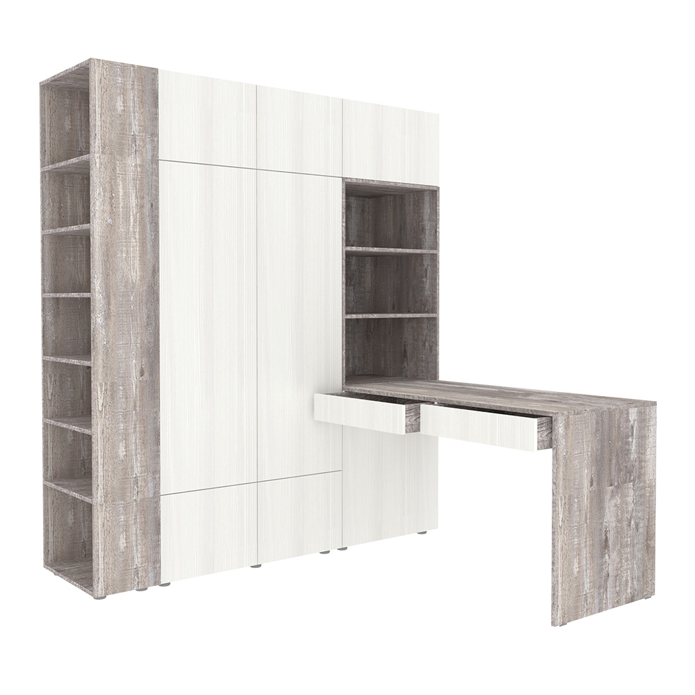 Стол письменный со стеллажом и шкафом 1765 Бетон Белое Дерево
