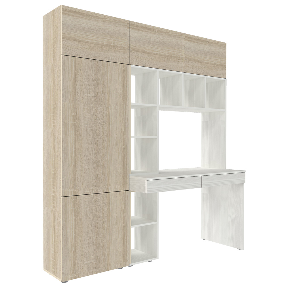 Стол письменный со стеллажом и шкафом 1800 Белое Дерево Дуб Сонома