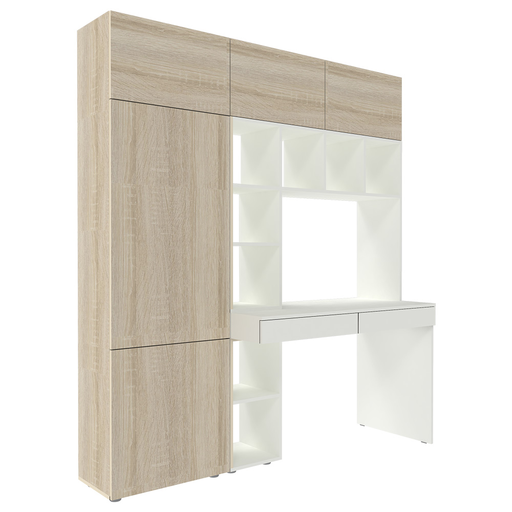Стол письменный со стеллажом и шкафом 1800 Белый Дуб Сонома