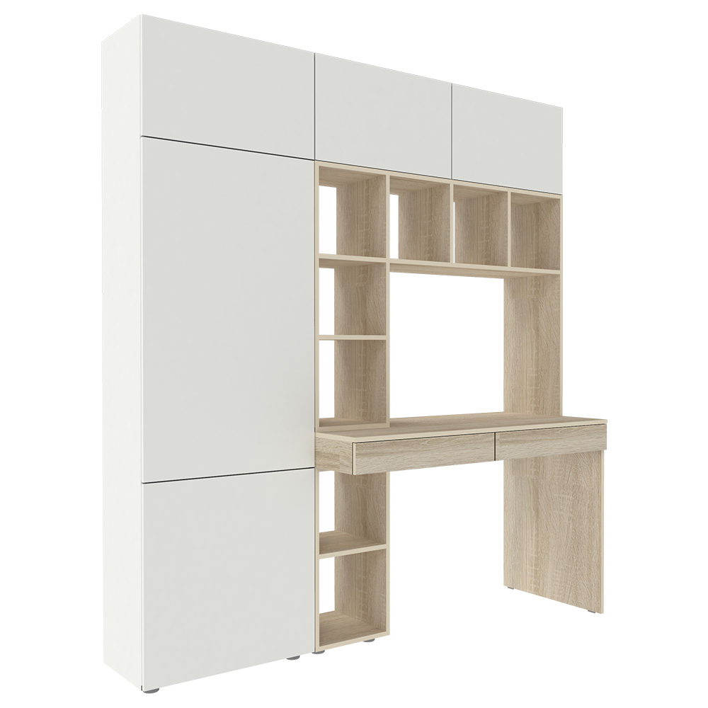 Стол письменный со стеллажом и шкафом 1800 Дуб Сонома Белый
