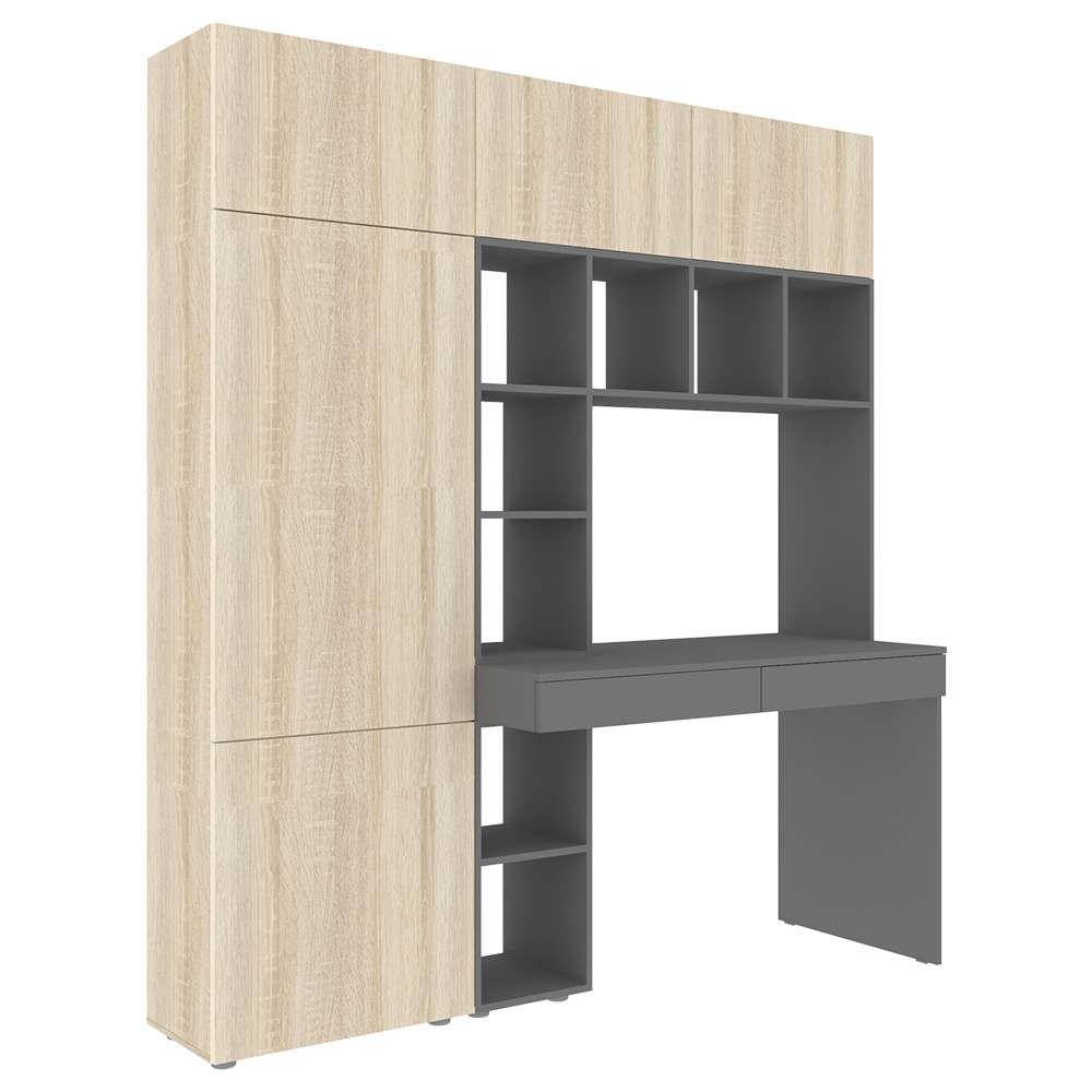 Стол письменный со стеллажом и шкафом 1800 Темно-серый Дуб Сонома